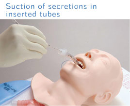- Not only in the oral/nasal cavities but also Suction of secretions in inserted tubes and in the tracheal cannula are possible.